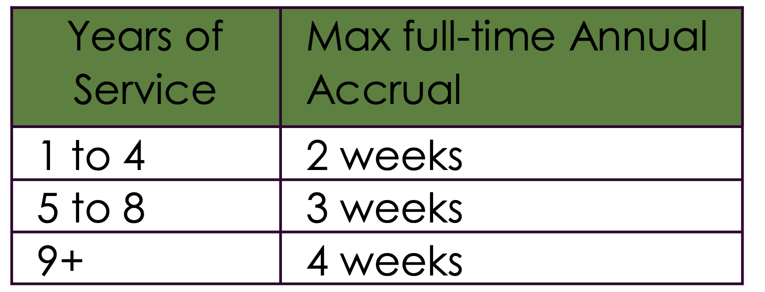 4 personal days, can be taken ½ or full day increments