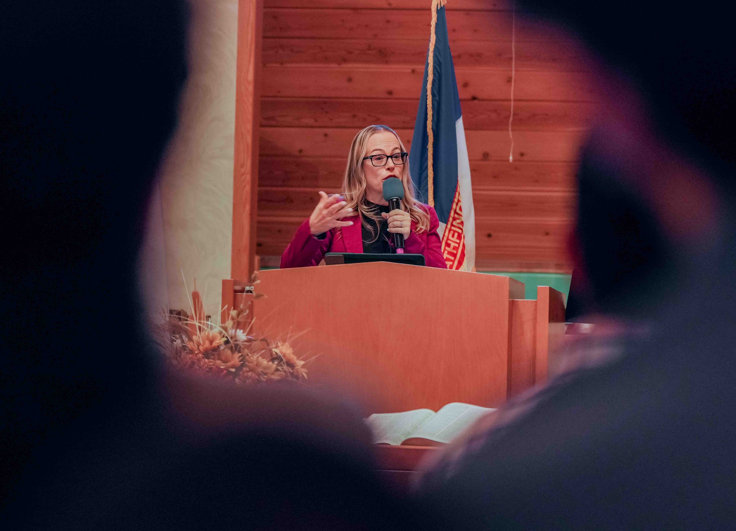 Pastor Melody Darrow preaches with passion, sharing her journey in ministry and God’s faithfulness in leading her to Wasatch Hills.